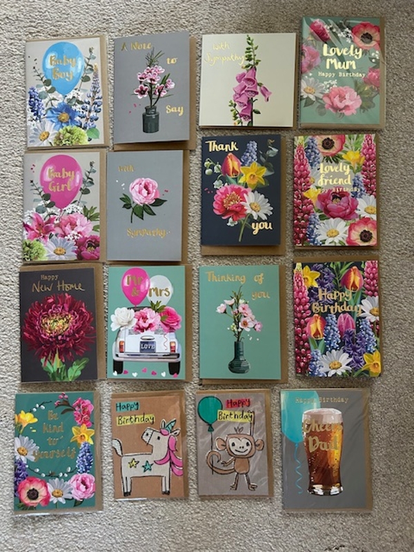 Beautiful Greetings Cards with floral images and messages, come with a brown envelope.